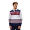 Design Your Own Custom Knitted Long Sleeve Jersey with Coast 2 Coast Sports. This design has traditional stripes around the part of the abdomen and one elbow. Easily change the colours and add logos on this example template. On the front you can upload your school emblem or mascot if you like. One front side and the whole back has a bigger blank area where you can put a big school name or team name, or the year number of your graduation just as an idea.